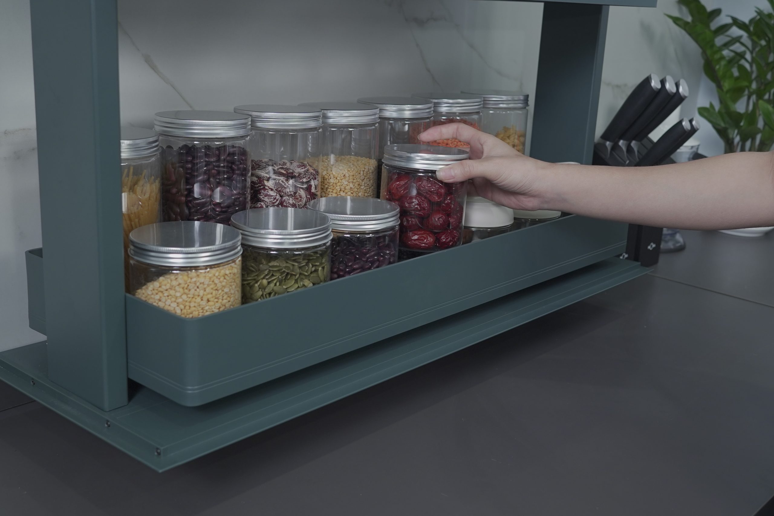 Không chỉ đóng vai trò là không gian chứa đồ, hệ giỏ của giá gia vị nâng hạ điện INOXA còn góp phần tạo điểm nhấn hiện đại cho tổng thể tủ bếp, thể hiện rõ định hướng thiết kế cao cấp và tư duy tối ưu trải nghiệm người dùng mà INOXA theo đuổi trong các dòng phụ kiện bếp ứng dụng công nghệ.