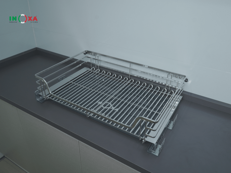 Bên cạnh khả năng tối ưu không gian, hệ nan oval với cấu trúc chắc khỏe không chỉ tạo điểm nhấn thẩm mỹ mà còn tăng đáng kể độ vững vàng cho toàn bộ khay chứa, đảm bảo an toàn khi đặt nhiều đồ dùng nhà bếp hay xoong nồi có dung tích lớn. Thiết kế tinh gọn nhưng mạnh mẽ này giúp không gian bếp trở nên ngăn nắp, tiện nghi và mang hơi thở hiện đại đúng chuẩn phong cách phụ kiện tủ bếp cao cấp của INOXA.