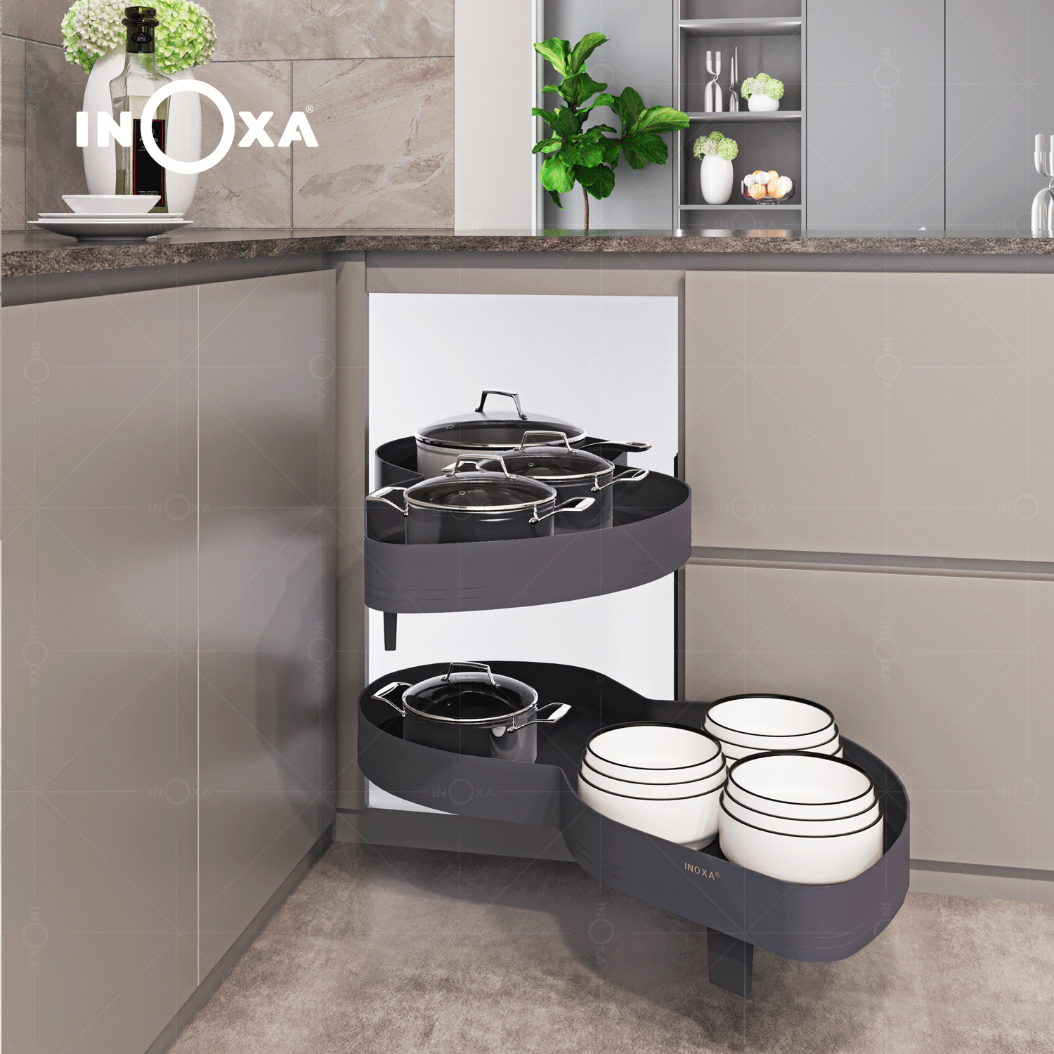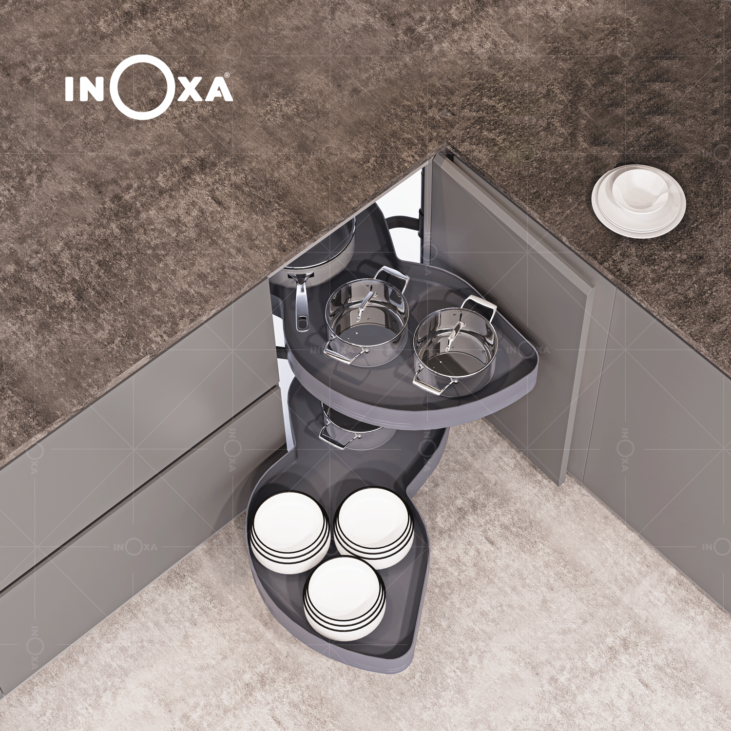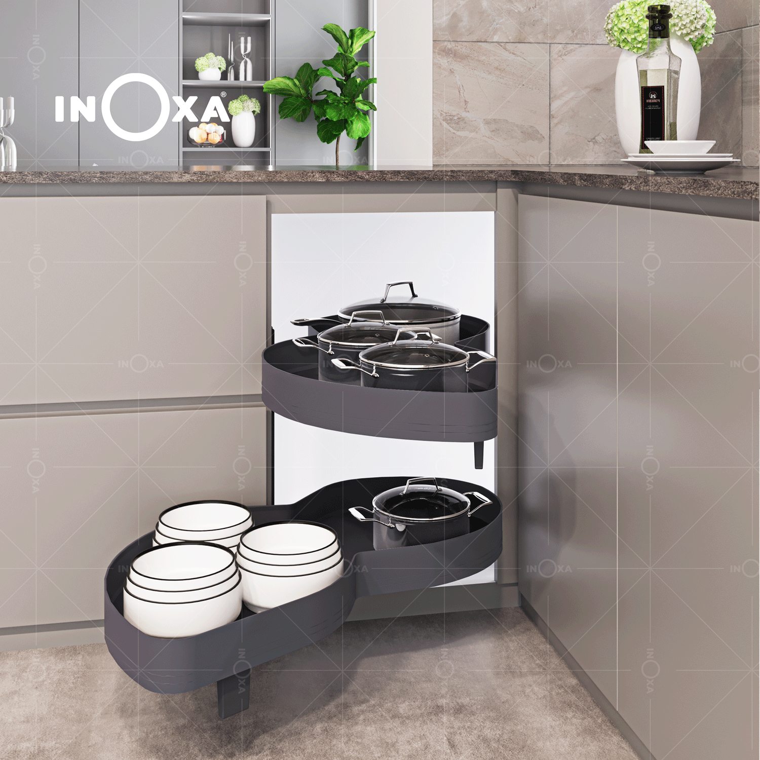 Trong một không gian bếp được tổ chức tốt, mọi khu vực đều cần có vai trò rõ ràng, kể cả những vị trí thường bị xem là khó sử dụng như góc tủ, các giải pháp lưu trữ cho khu vực góc ngày càng được phát triển theo hướng tối ưu chuyển động, kiểm soát tải trọng và nâng cao trải nghiệm tiếp cận đồ dùng. Mâm xoay góc hình lá nhôm Carbon của INOXA là một trong những thiết kế được định hình theo hướng này, tập trung vào sự ổn định của kết cấu, tính độc lập trong chuyển động và khả năng tận dụng không gian góc một cách hiệu quả nhất.