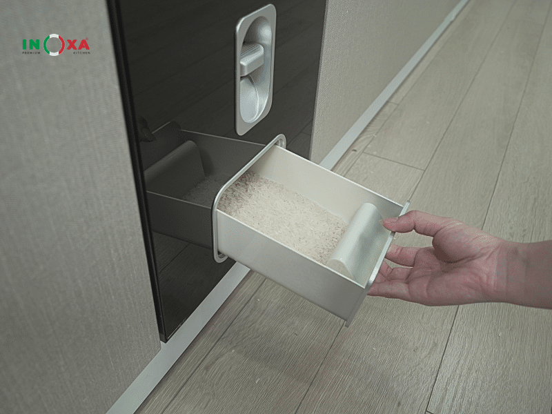 Trong không gian bếp hiện đại, thùng gạo không chỉ đóng vai trò lưu trữ mà còn ảnh hưởng trực tiếp đến tính thẩm mỹ và sự ngăn nắp của tổng thể tủ bếp. Việc tích hợp thùng gạo âm tủ với thiết kế mặt gương giúp khu vực bếp trở nên gọn gàng, tinh giản và đồng bộ hơn với các thiết bị nhà bếp cao cấp.