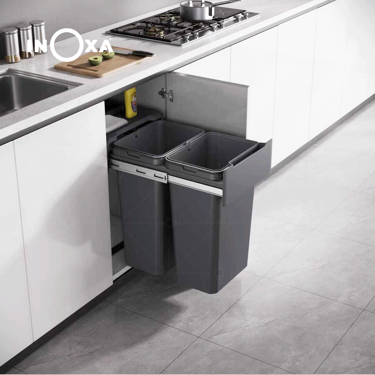 Cấu hình thùng rác đôi với tổng dung tích 28L (2 x 14L) cho phép phân loại rác ngay tại nguồn, đáp ứng nhu cầu sinh hoạt hiện đại như tách rác hữu cơ và rác khô. Thiết kế này giúp gian bếp luôn gọn gàng, sạch sẽ hơn và thuận tiện trong việc xử lý rác thải mỗi ngày.